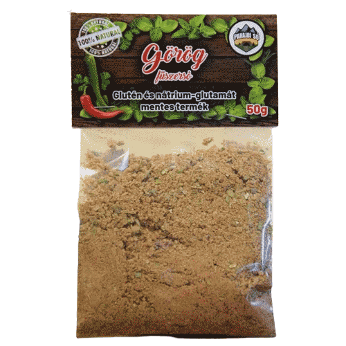 A görögországi nyaralások élményét, a napfényt, a tengert varázsolhatja az otthon készült gyros-ba, muszakába, vagy akár a paradicsomlevesbe a Görög fűszersóval, ami 5 fűszer harmóniájával járul hozzá a szaftos falatokhoz. Kapható 50 gr-os és 250 gr-os kiszerelésben.